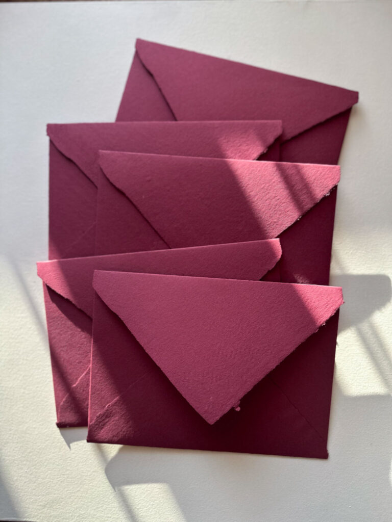 Ciemne odcienie papieru czerpanego na indywidualne zamówienie. Czas realizacji 2-3 tygodnie. Możliwość wyboru formatów od A4 do winietki oraz kopert od C5 do C6. Przewodnik po rozmiarach papieru znajduje się w menu w zakładce PAPIER.